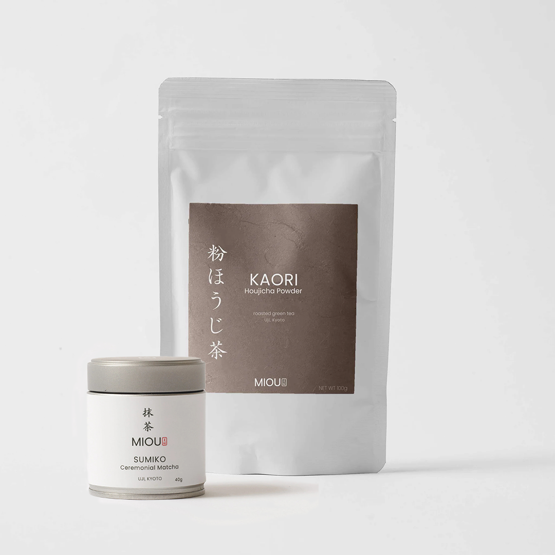 Our AM/PM Ritual Bundle pairs our Sumiko Ceremonial Matcha for sustained, focused energy, with our smooth, roasted Kaori Houjicha to help you unwind at night.